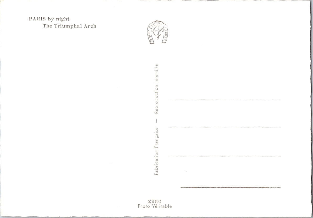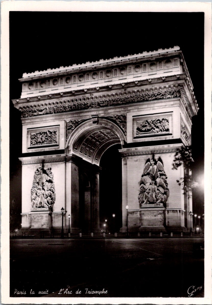Vintage Postcard The Triumphal Arch Paris At Night France Unposted