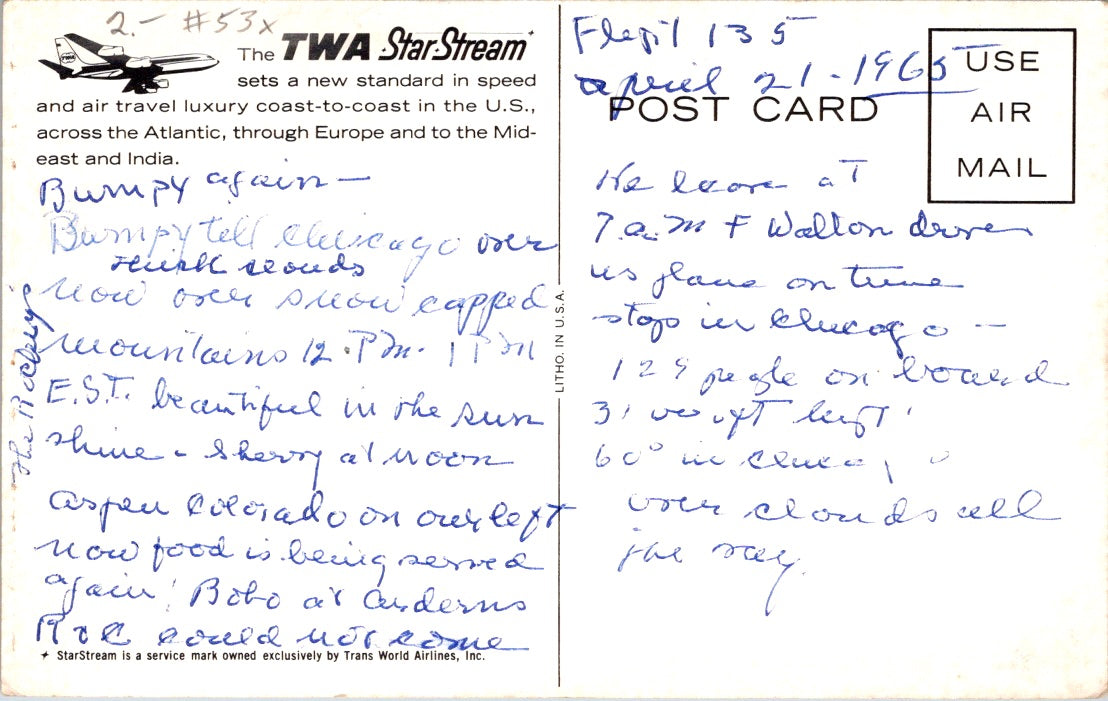 Vintage Postcard The TWA Star Stream New York United States Unposted