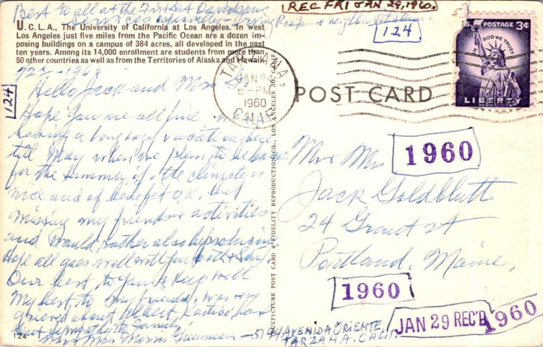 Vintage Postcard The University Of California Los Angeles Posted 1960