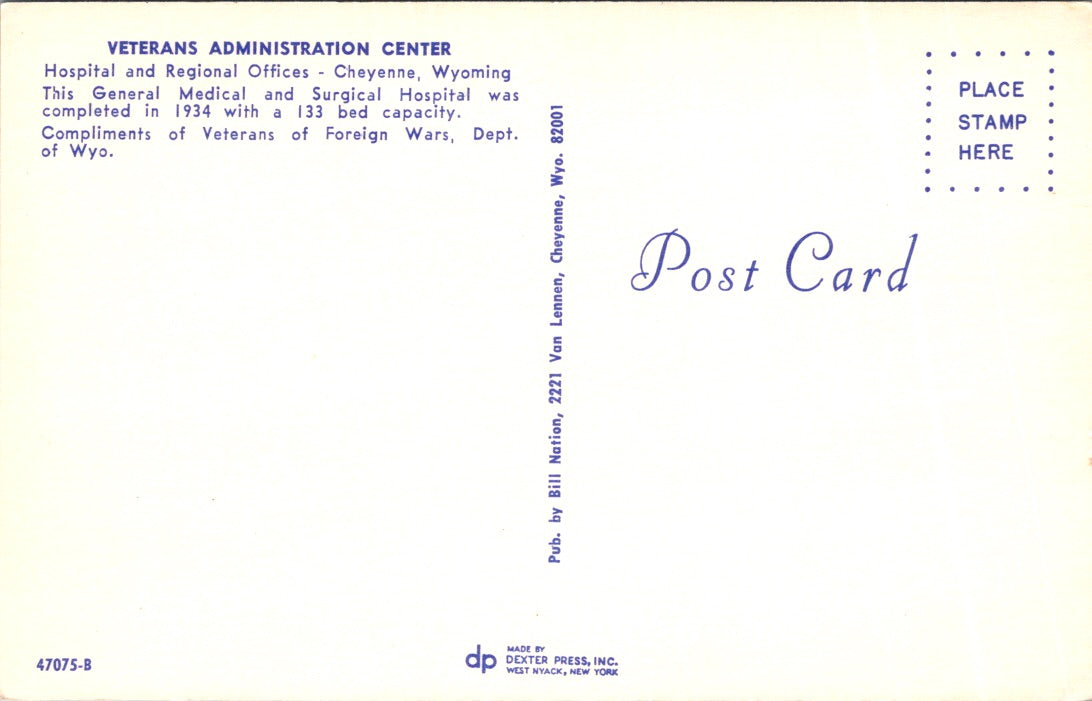 Vintage Postcard The Veterans Administration Center Cheyenne Wyoming Unposted