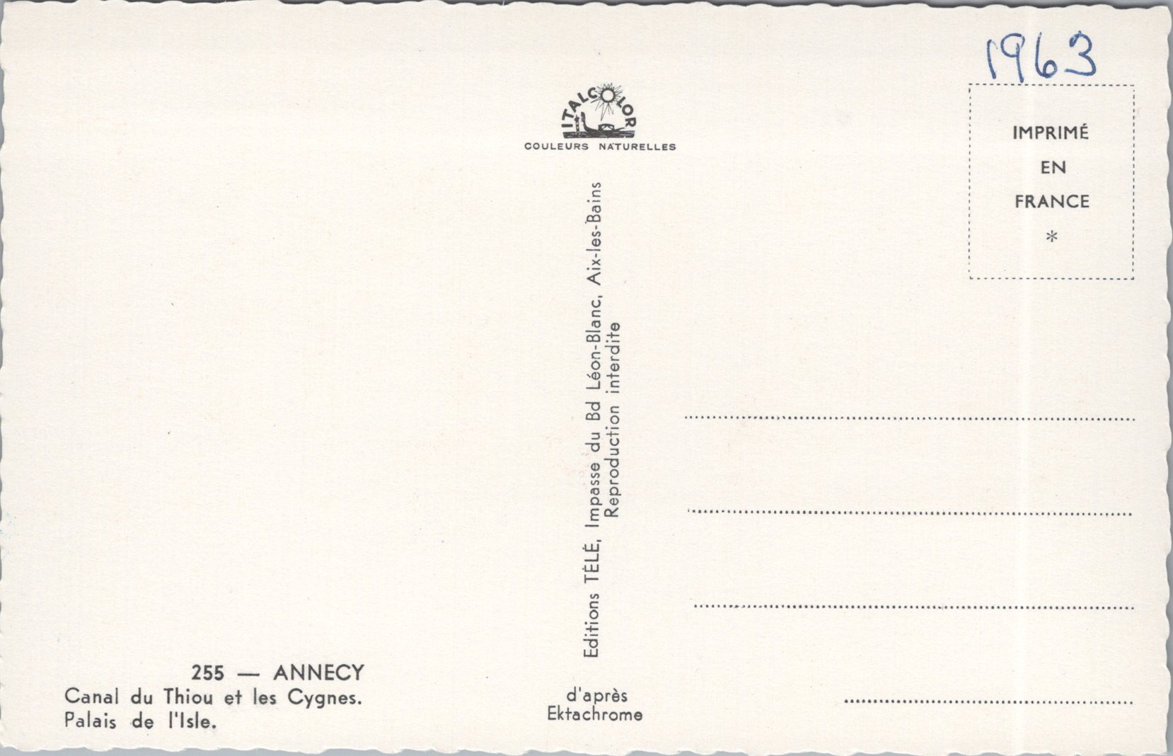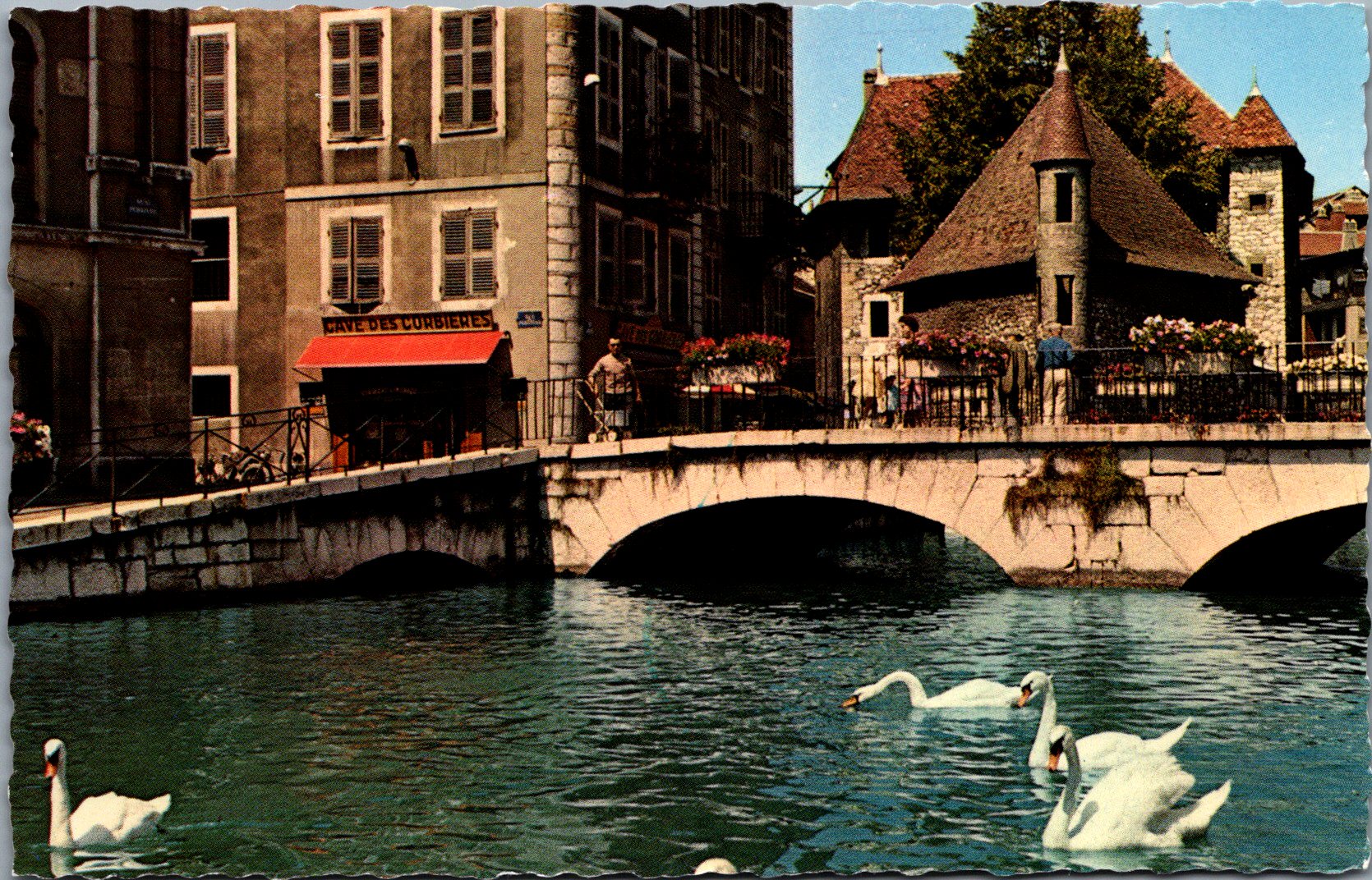 Vintage Postcard Thiou Canal And Swans Palais de l'Isle Annecy France Unposted
