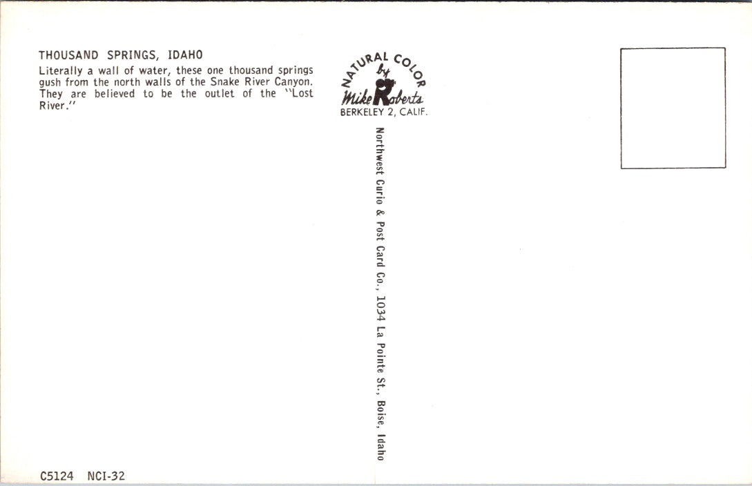 Vintage Postcard Thousand Springs State Park Idaho Outlet Of The Lost River