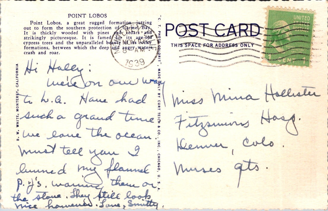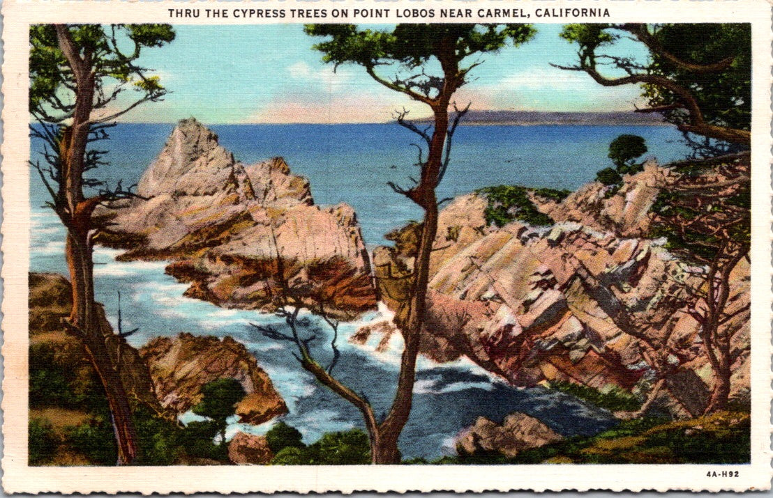 Vintage Postcard Thru The Cypress Trees On Point Lobos Near Carmel California