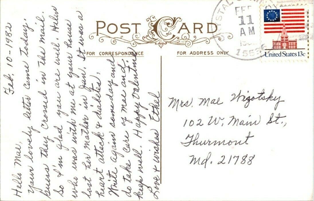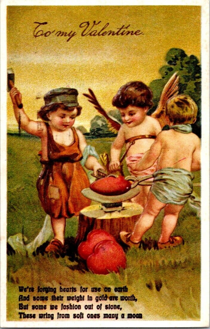 Vintage Postcard To My Valentine Cupid Hearts 1982 United States 13 Cents Posted