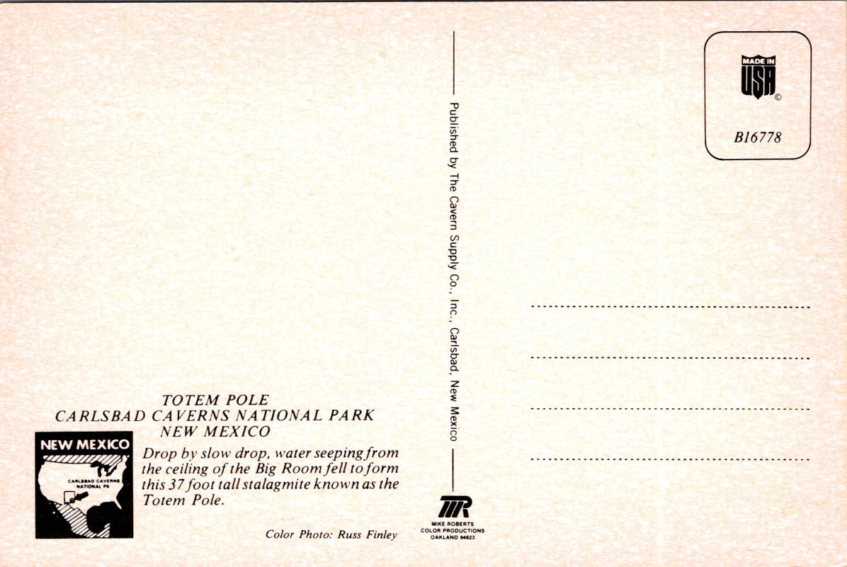 Vintage Postcard Totem Pole Carlsbad Caverns National Park New Mexico Unposted