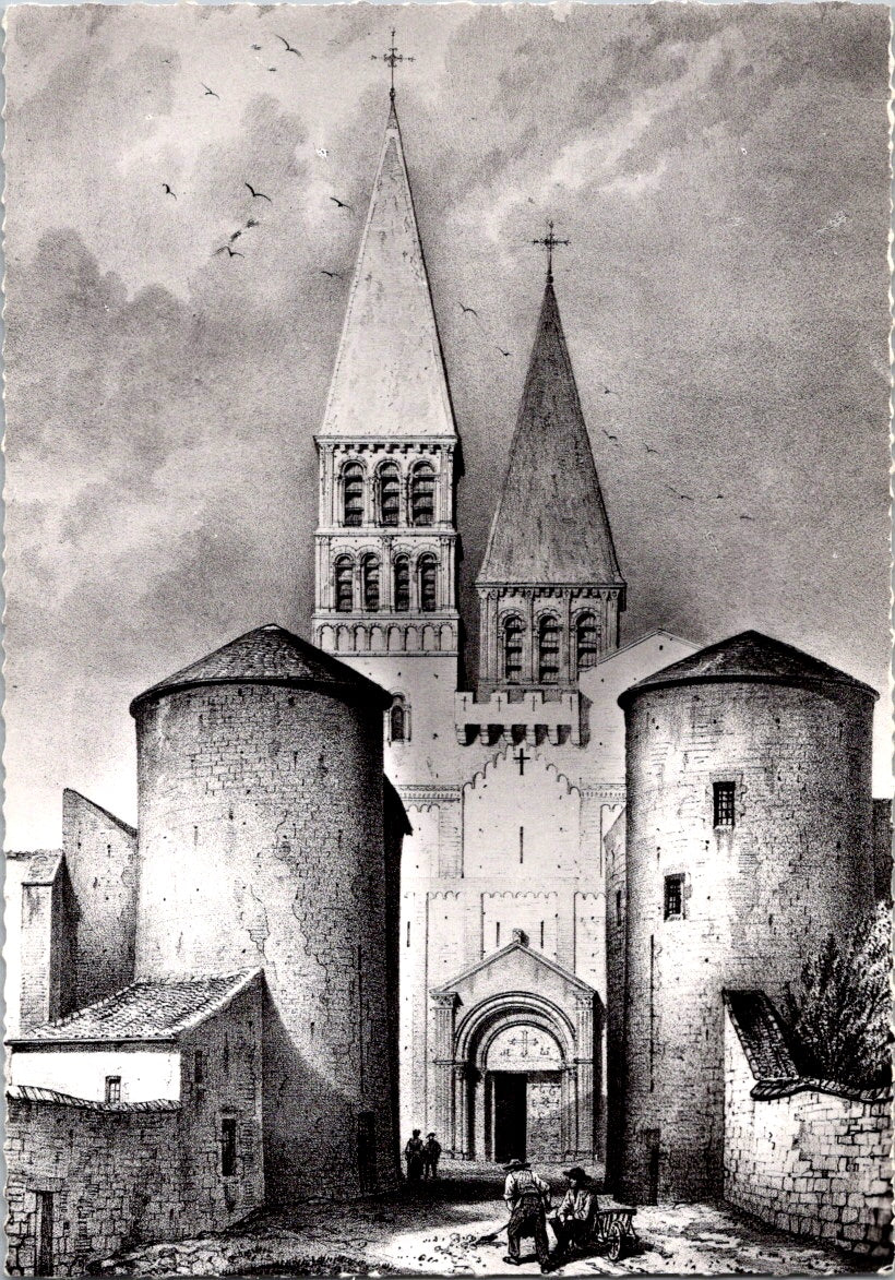 Vintage Postcard Tournus Ancient Lithograph Of A Cathedral France Unposted