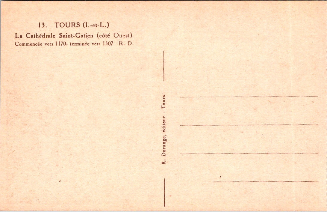 Vintage Postcard Tours France Cathédrale Saint-Gatien Unposted