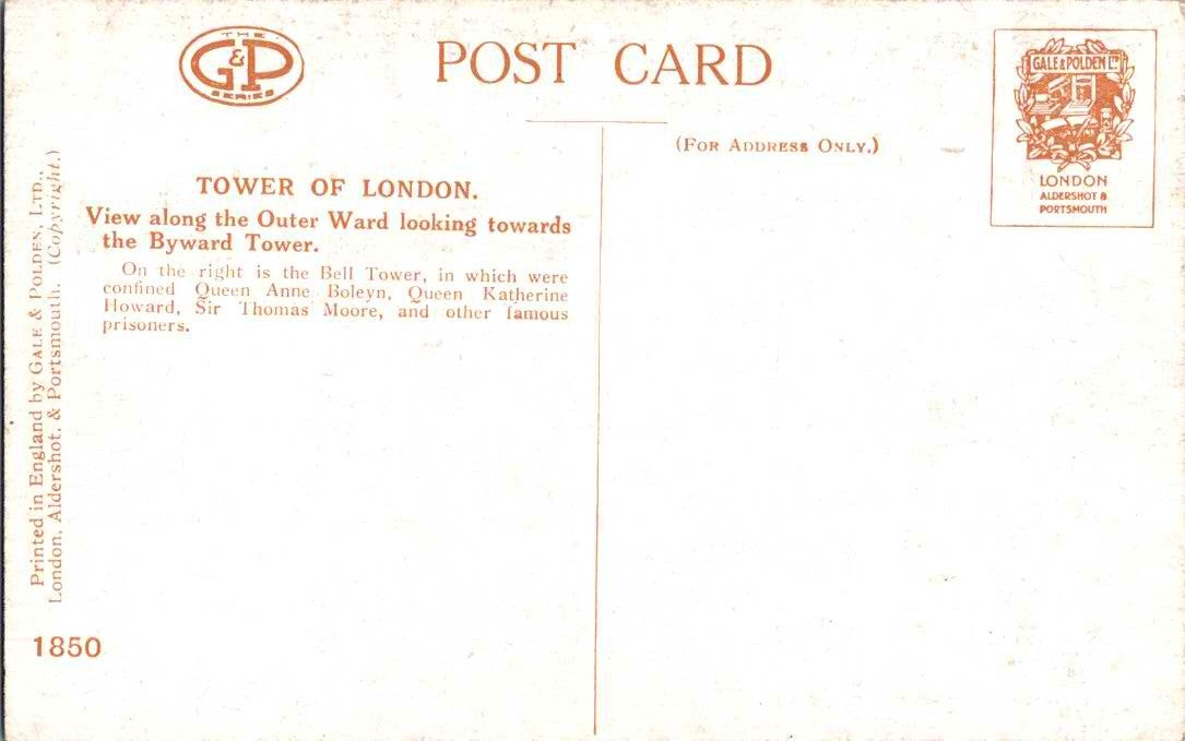 Vintage Postcard Tower Of London View Along Outer Ward Looking Byward Tower