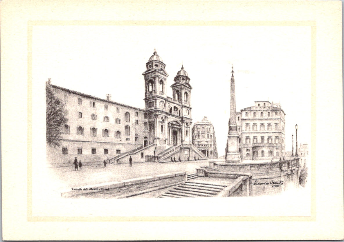 Vintage Postcard Trinità dei Monti By Ludovico Venuti Rome Italy Unposted