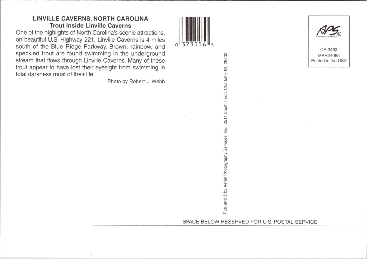 Vintage Postcard Trout Inside Linville Caverns North Carolina Unposted