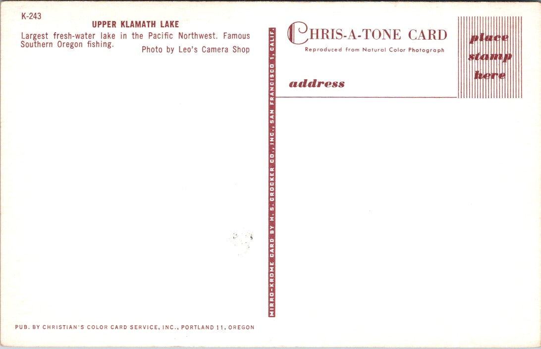 Vintage Postcard Upper Klamath Lake Oregon Fishing United States Unposted