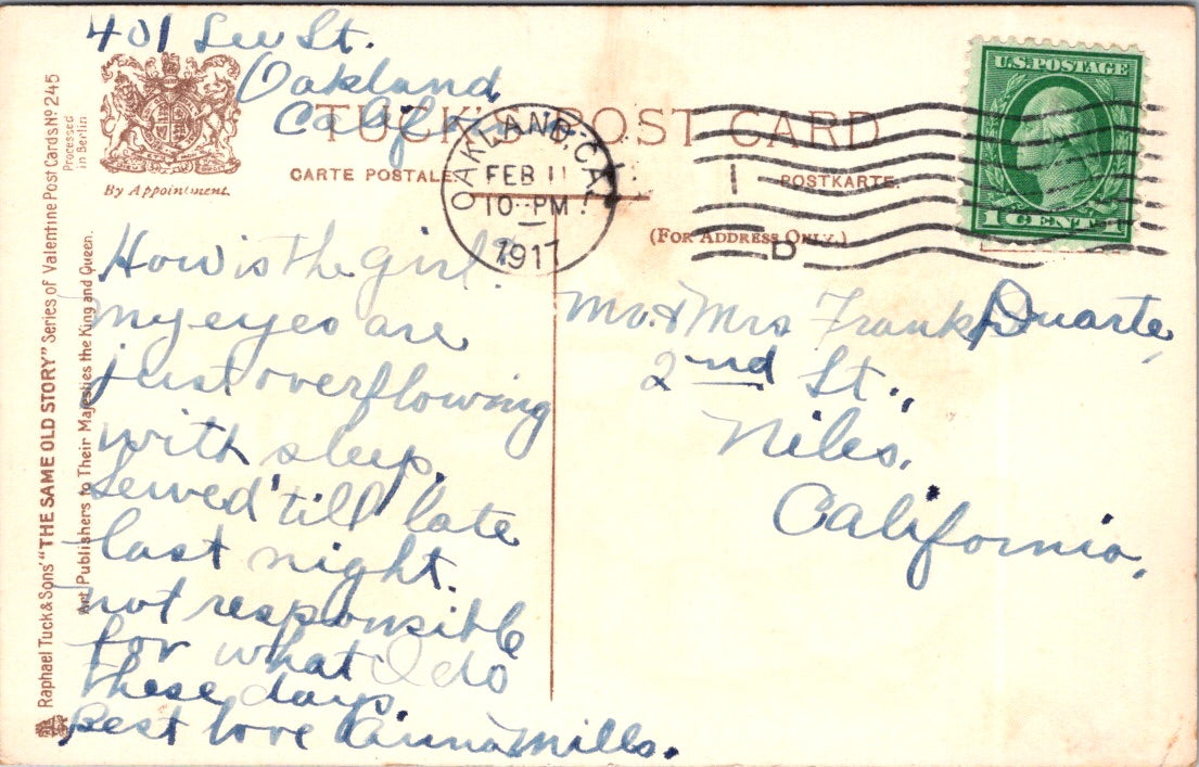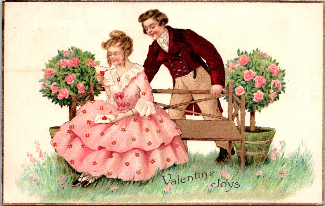 Vintage Postcard Valentine Joys Girl Reading Greeting Card Posted 1917 One Cent