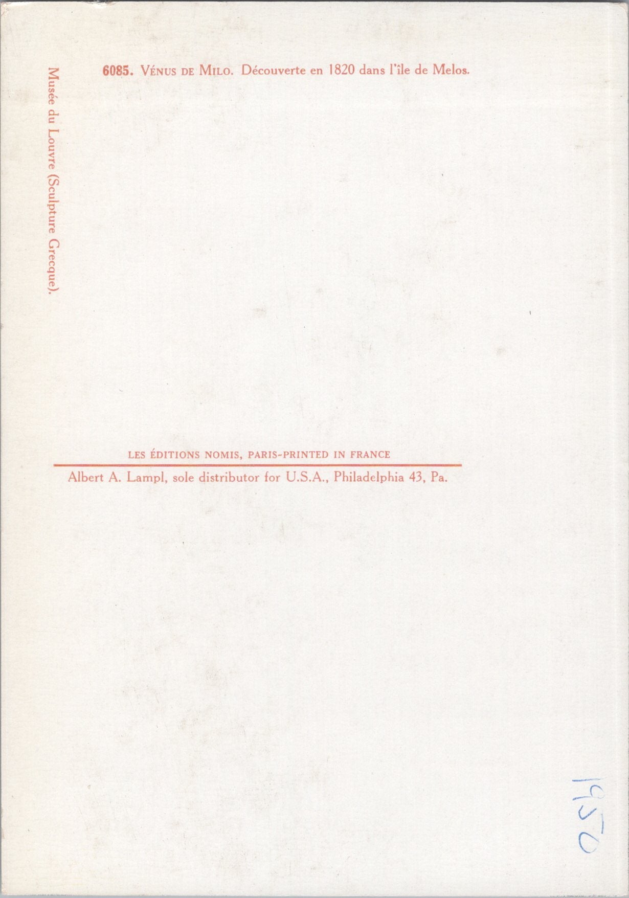 Vintage Postcard Venus de Milo Discovered In 1820 In The Island Of Melos France