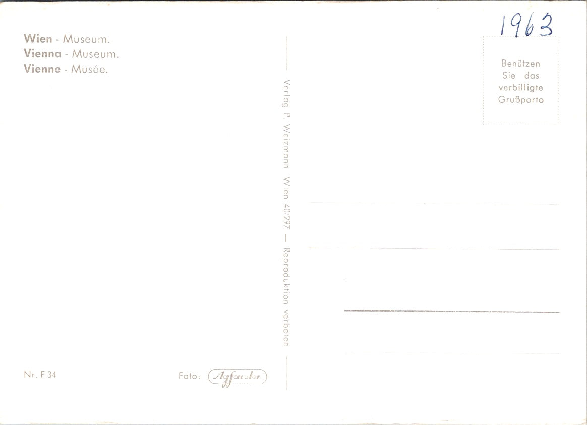 Vintage Postcard Vienna Museum Austria Kunsthistorisches Museum Wien Unposted