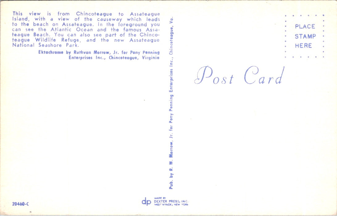Vintage Postcard View from Chincoteague To Assateague Island Virginia Unposted