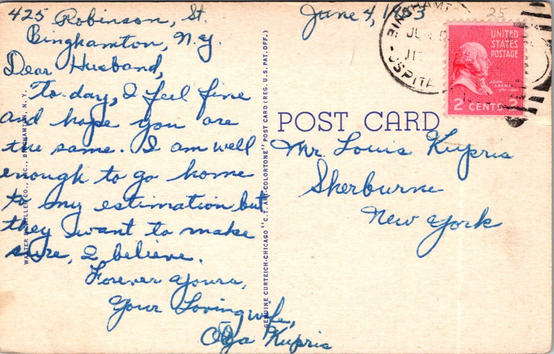 Vintage Postcard View From South Mountain Park Binghamton New York Posted