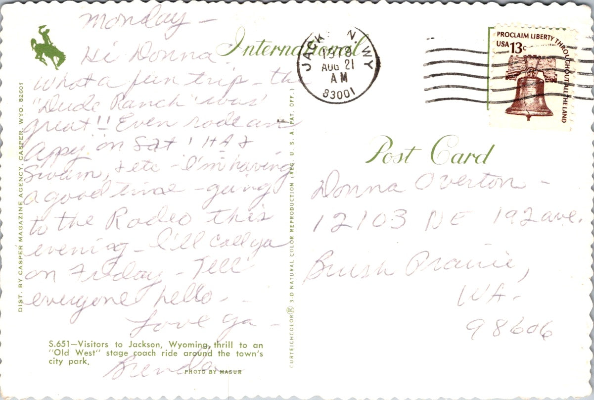 Vintage Postcard Visitors To Jackson Wyoming Thrill To An Old West Posted 1979