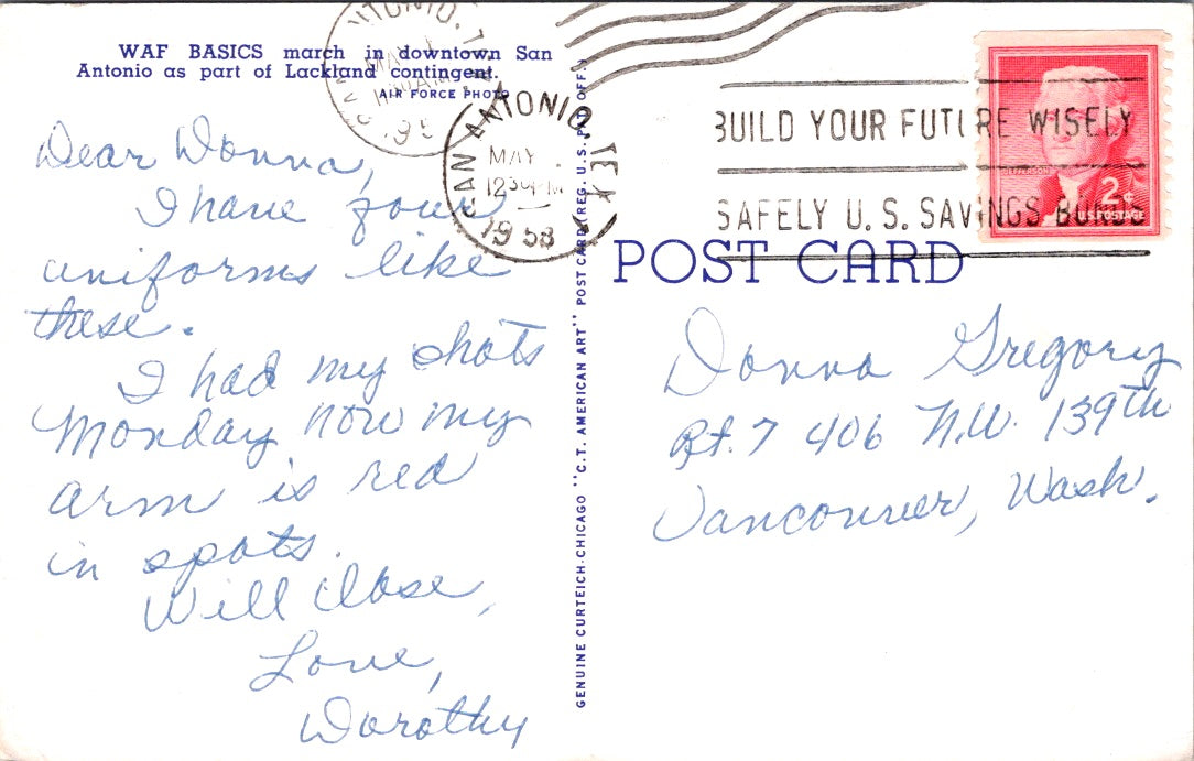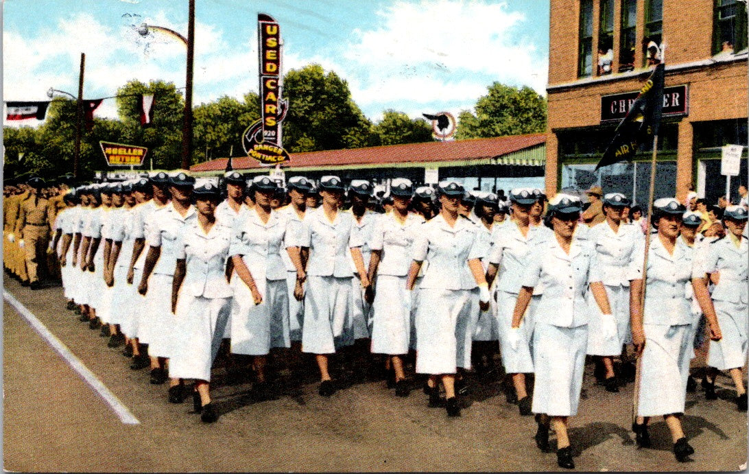 Vintage Postcard WAF Basic March In Downtown San Antonio Texas Posted 1958