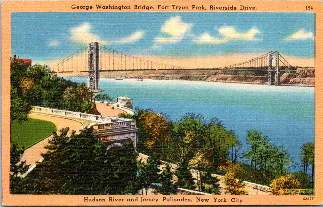 Vintage Postcard Washington Bridge Fort Tyron Park Hudson River Jersey Palisades