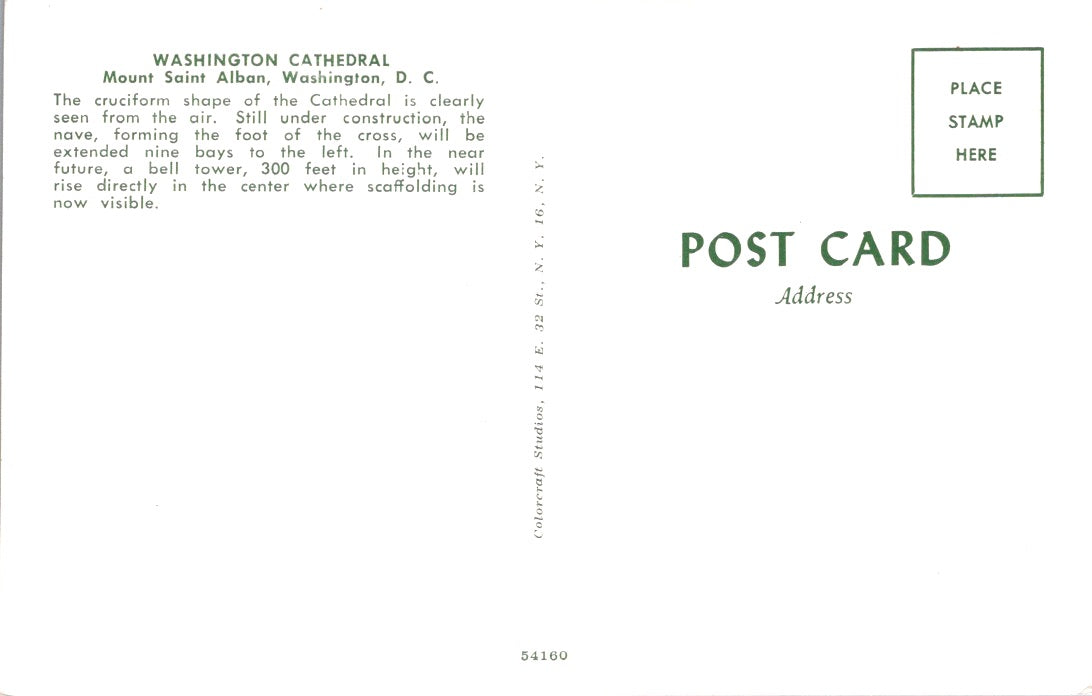 Vintage Postcard Washington Cathedral Mount Saint Alban Washington DC Unposted