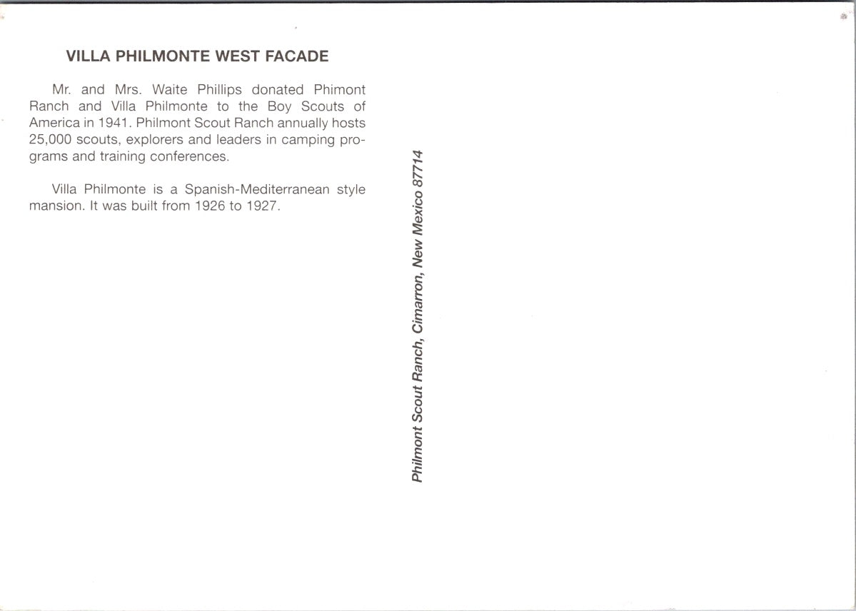 Vintage Postcard West Facade Of Villa Philmone New Mexico Unposted
