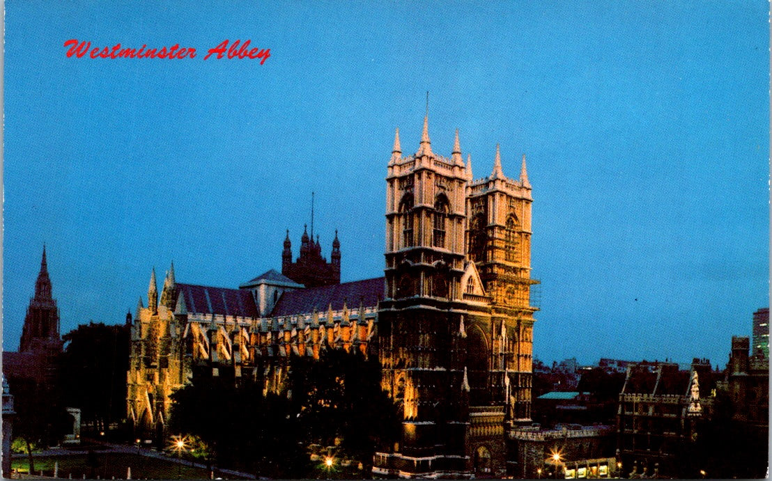 Vintage Postcard Westminster Abbey Floodlit London England United Kingdom
