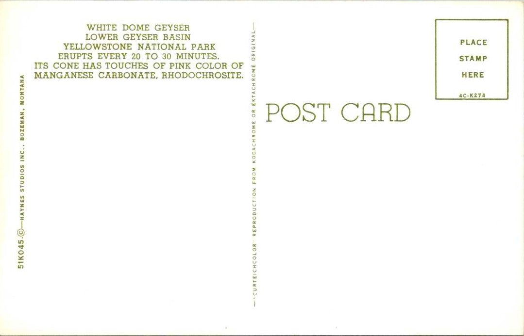 Vintage Postcard White Dome Geyser Lower Basin Yellow Stone Wyoming Unposted