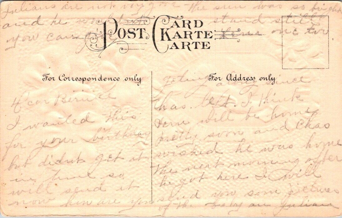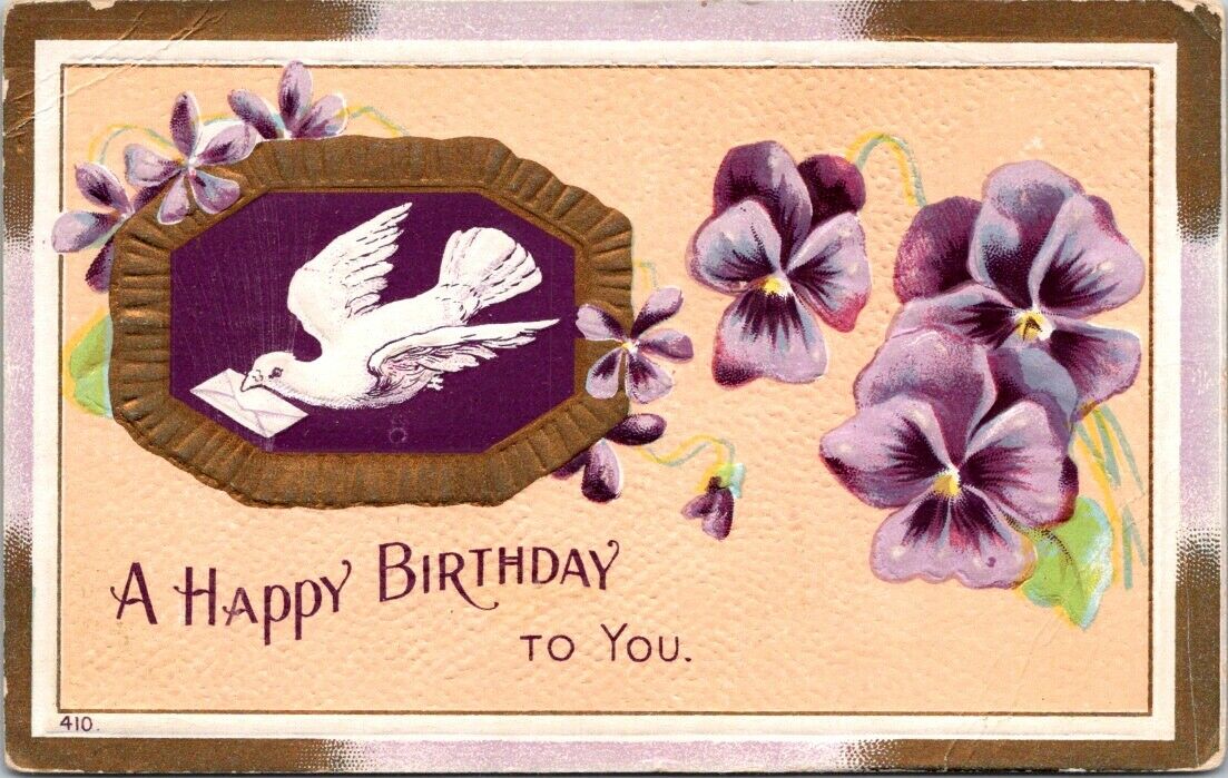 Vintage Postcard White Dove Purple Flower A Happy Birthday To You