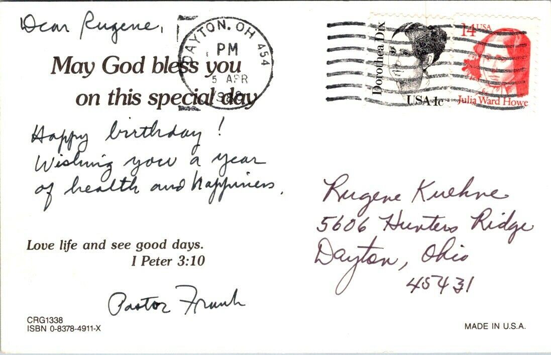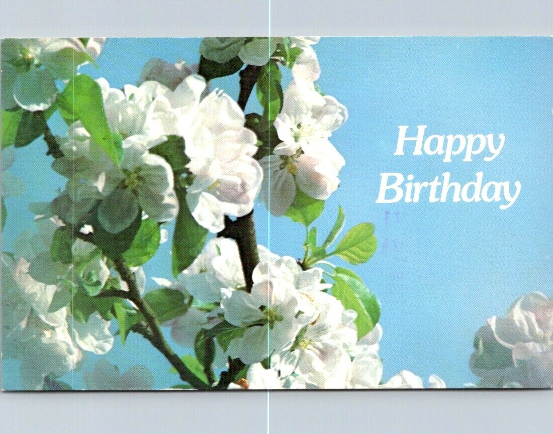 Vintage Postcard White Flower Happy Birthday Greetings Posted 1986 Dayton Ohio