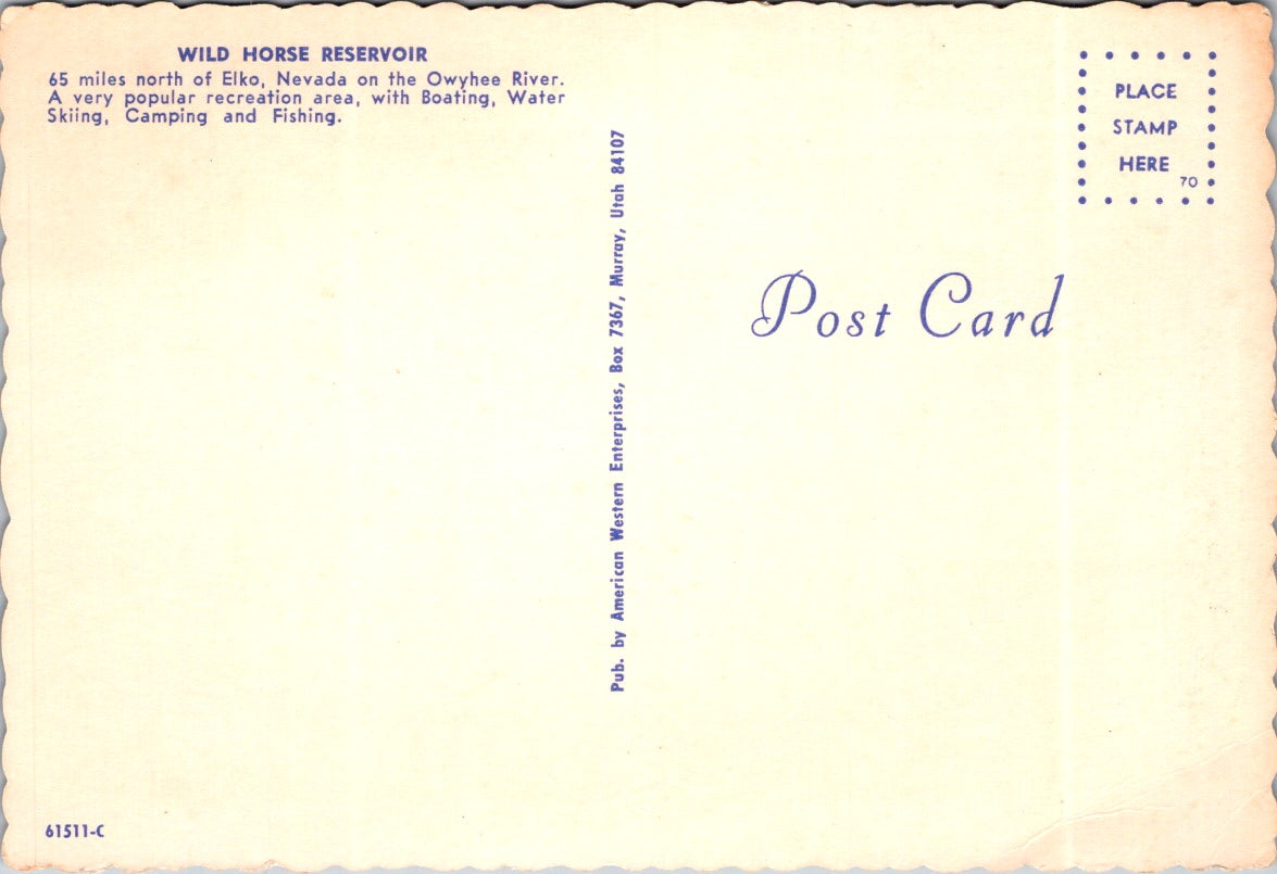 Vintage Postcard Wildhorse Reservoir Elko Nevada Owyhee River Unposted