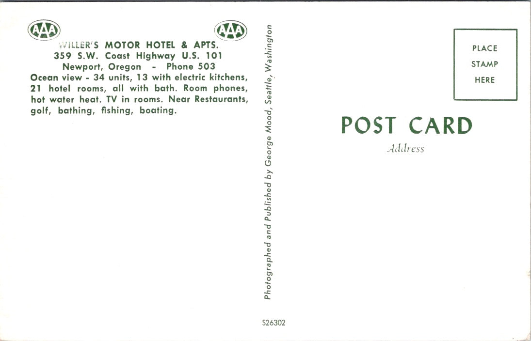 Vintage Postcard Willers Motor Hotels And Apartments Oregon United States