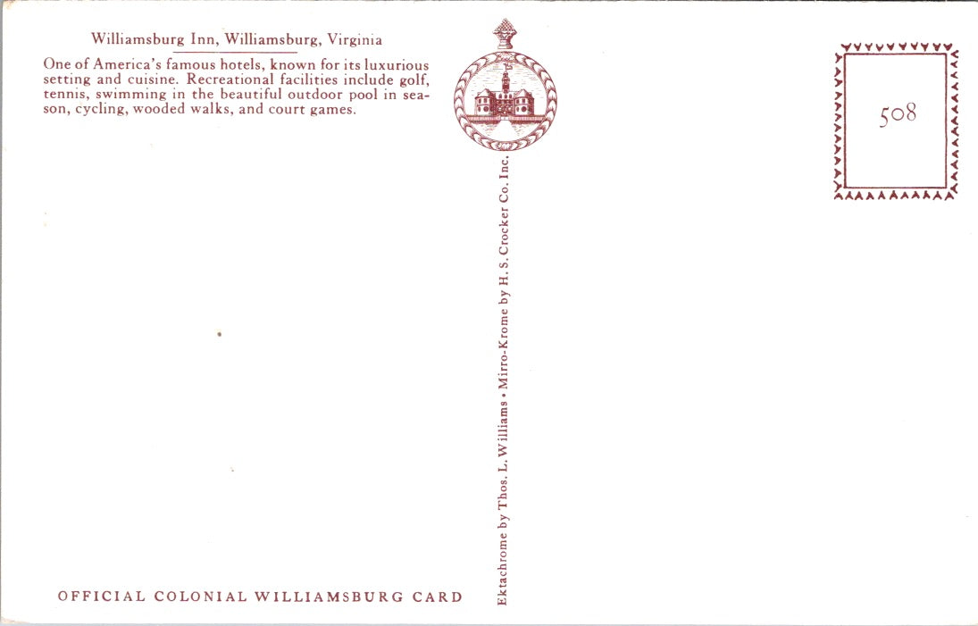 Vintage Postcard Williamsburg Inn Williamsburg Virginia United States Unposted