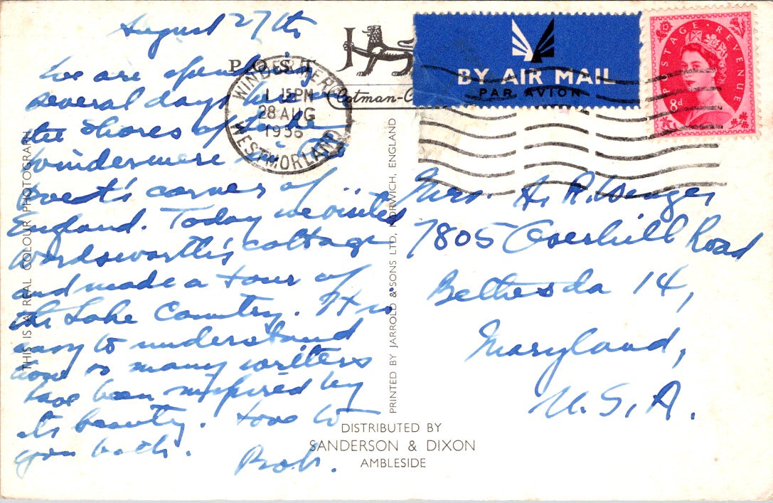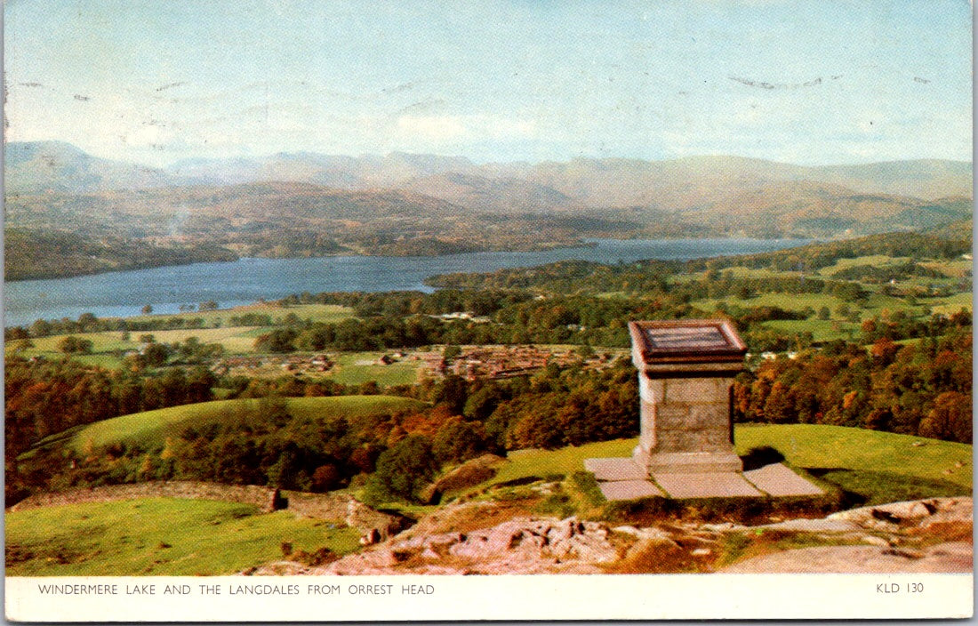 Vintage Postcard Windmere Lake And The Langdales From Orrest Head Posted 1956