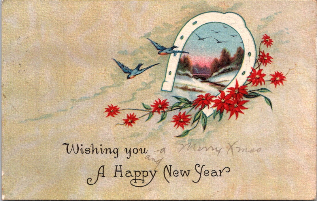 Vintage Postcard Wishing You A Merry Christmas And Happy New Year Posted 1915