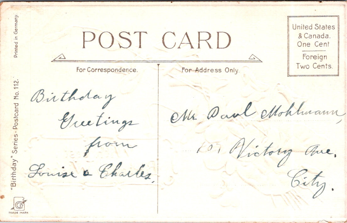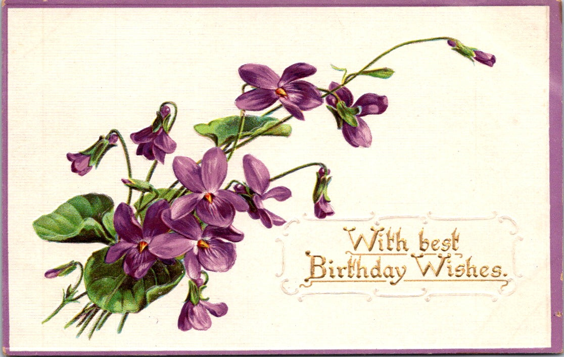 Vintage Postcard With Best Birthday Wishes Greetings Unposted