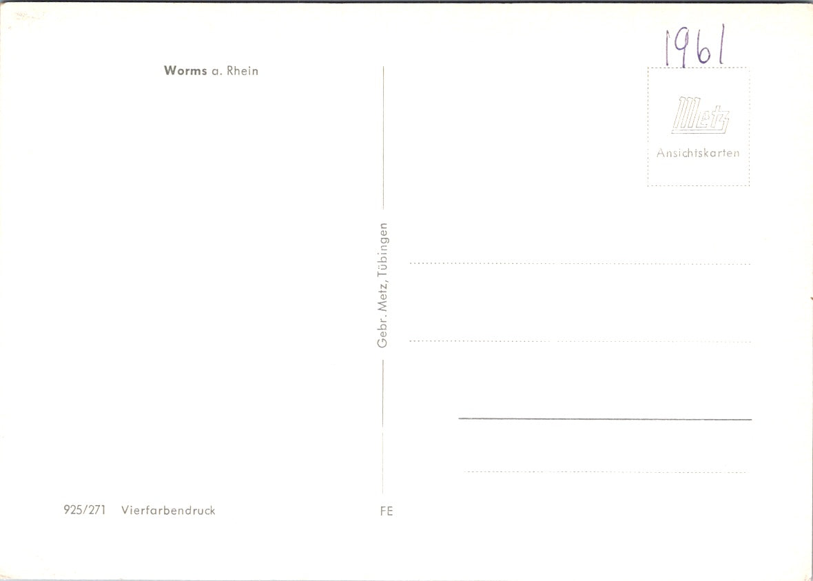 Vintage Postcard Worms Am Rhein Germany Unposted