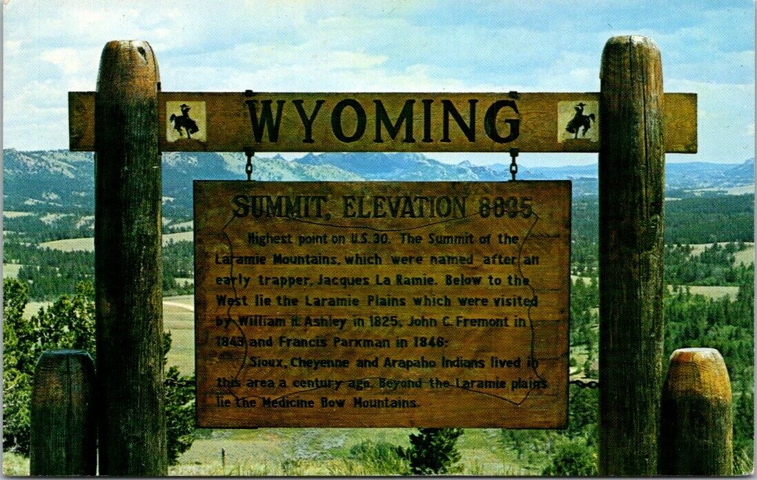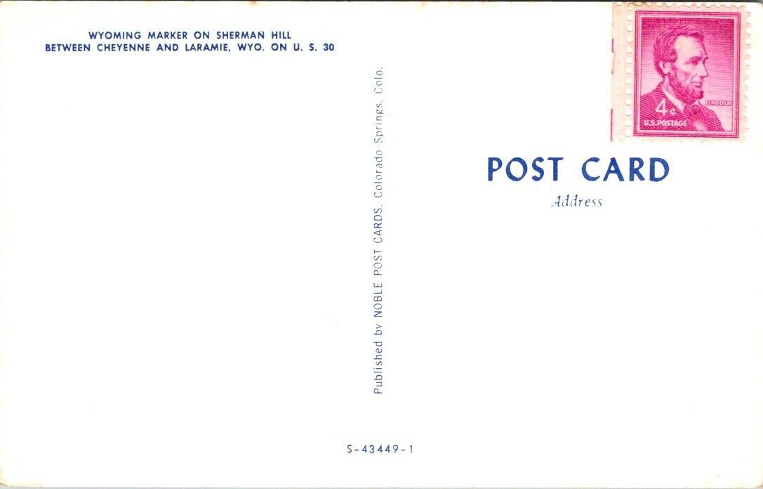 Vintage Postcard Wyoming Marker On Sherman Hill United States Unposted