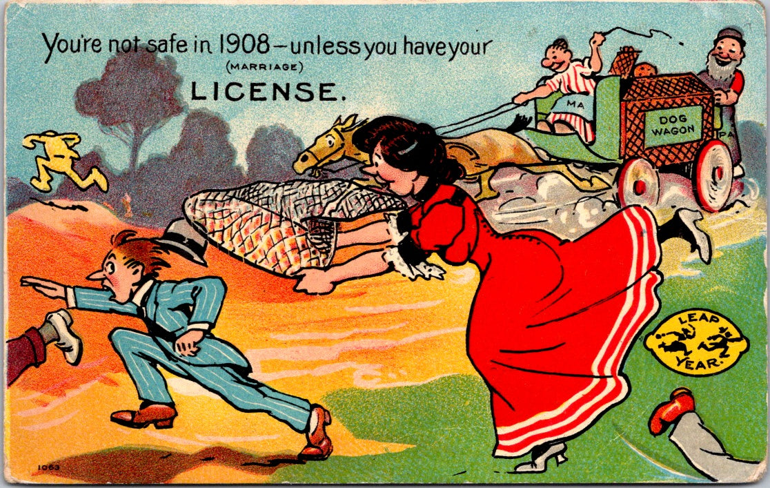 Vintage Postcard You're Not Safe In 1908 Unless You Have Your Marriage License