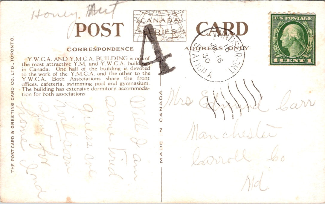 Vintage Postcard YWCA And YMCA Windsor Ontario Canada Unposted