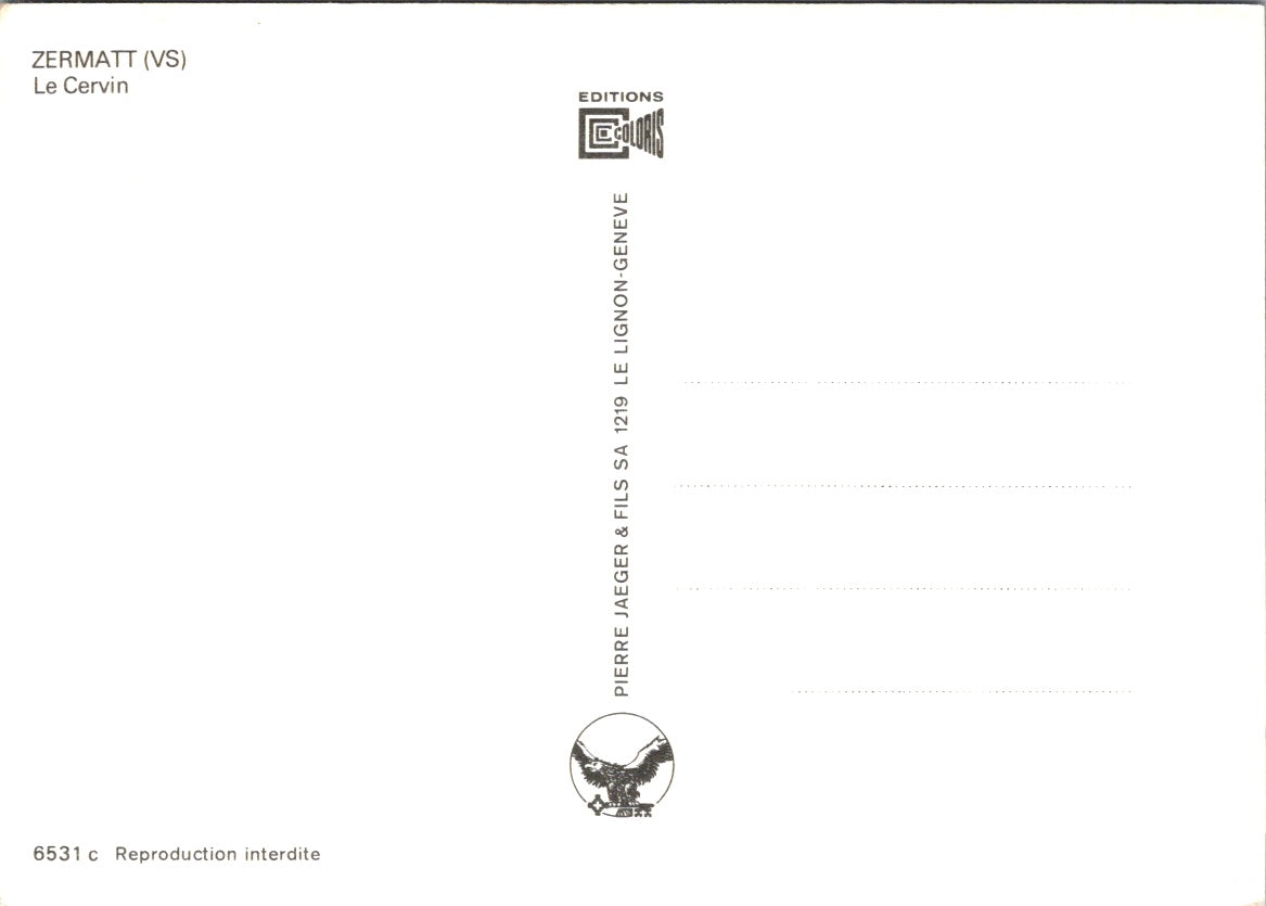 Vintage Postcard Zermatt Le Cervin Switzerland Unposted